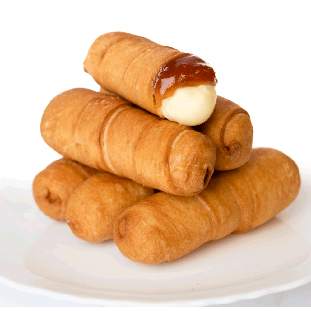 Palitos de queso y guayaba envueltos en masa de harina de trigo. Precocidos.